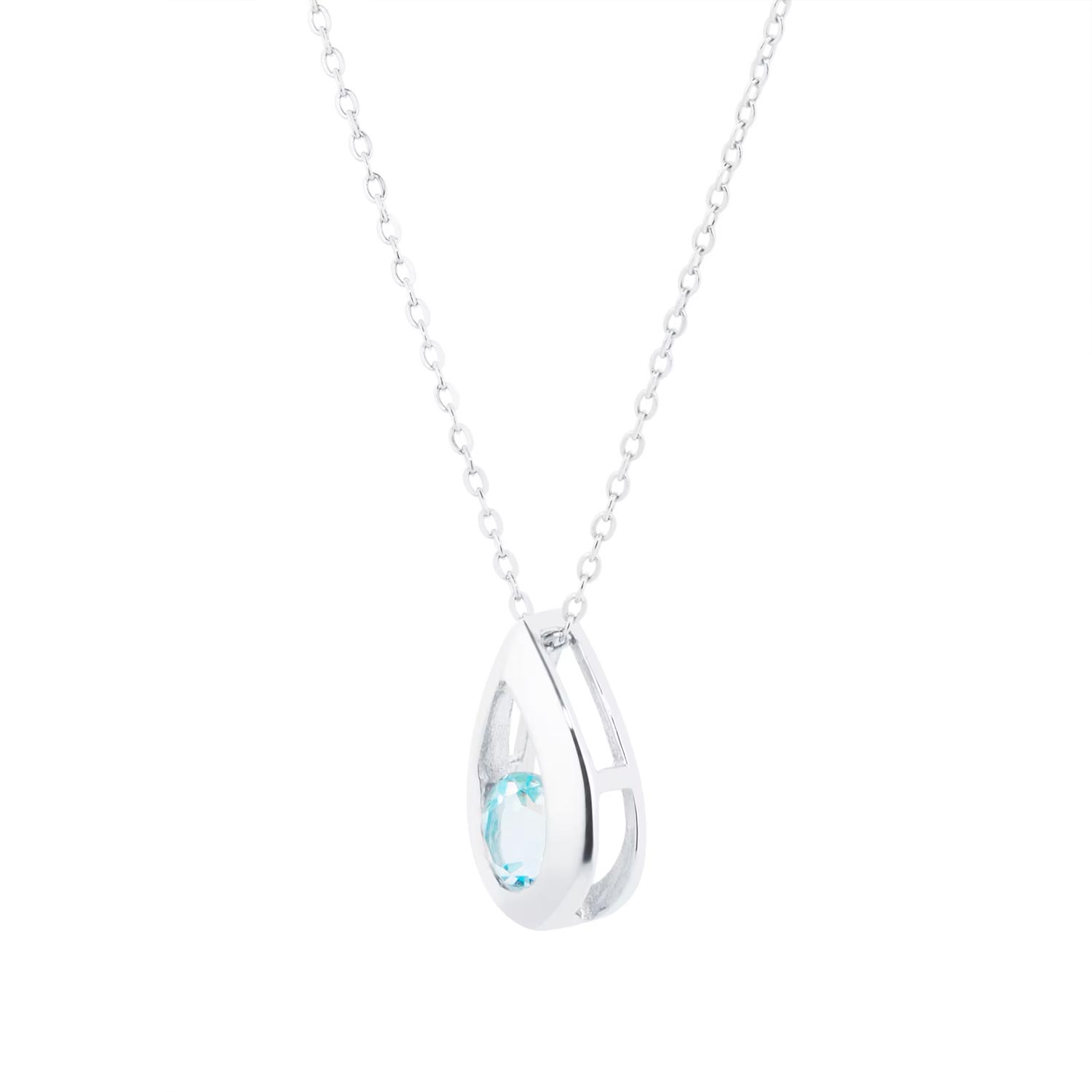 9ct White Gold Blue Topaz Teardrop Pendant